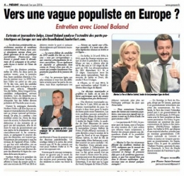 Le quotidien français Présent de ce 1 juin 2016 publie mon interview réalisée par Pierre Saint-Servant :