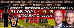 Allemagne. Les invités du rassemblement de PEGIDA à Dresde en Saxe lors du rassemblement du 31 mai 2021 sont l'ancien numéro 2 de l'aile nationaliste de l'AfD Andreas Kalbitz et le rédacteur en chef du magazine Compact Jürgen Elsässer.